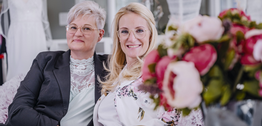 Wer den hellen, freundlichen Laden in München-Haar betritt, fühlt sich sogleich willkommen. Jede einzelne Kundin steht hier im Mittelpunkt. „Neben der vielfältigen Auswahl unserer Kleider legen wir besonders großen Wert auf eine kompetente, freundliche und persönliche Beratung unserer Kundinnen“, sagt Monika Bischof. „Jede Braut ist anders und hat eigene Vorstellungen, und wir setzen alles daran, für jede ihr individuelles Traumkleid zu finden, in dem sie sich einfach wunderschön fühlt.“