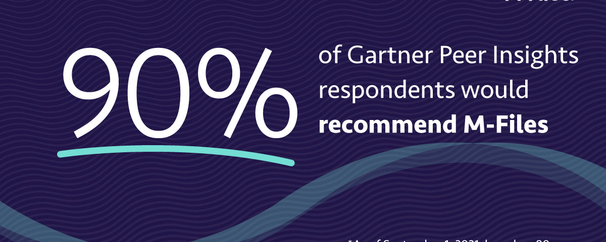 Ratingen, 6.9.2021 – M-Files, führender Anbieter für intelligentes Informationsmanagement, gab heute bekannt, dass das Unternehmen jetzt am Gartner Peer Insights Customer First Programm für Content-Services-Plattformen teilnimmt. Mit dem Beitritt zu diesem Programm verpflichtet sich M-Files dazu, die direkte Bewertung durch Kunden zu fördern. Die Bewertungen werden von Gartner gründlich geprüft und liefern verwertbare, objektive Erkenntnisse. So werden Vertrauen und Glaubwürdigkeit weiter ausgebaut und M-Files nutzt das gewonnene ehrliche, unvoreingenommene und direkte Feedback, um die Produkte noch weiter zu verbessern. Basierend auf 80 Bewertungen aus den letzten 12 Monaten empfehlen 90 Prozent der Befragten M-Files als Content-Services-Plattform (Stand 1.9.2021).
