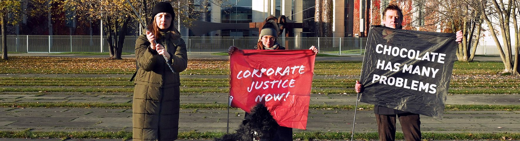gebana hat vor allem die Missstände beim Kakaoanbau im Blick: Abholzung von Wäldern, massiver Pestizideinsatz, Kinderarbeit und Armut. „Mit dem Angry Gorilla machen wir auf die Missstände in der Schokoladenindustrie aufmerksam und kämpfen dafür, dass Konzerne endlich Verantwortung für ihr Handeln übernehmen. Dafür muss das EU-Gesetz strenger werden als das Deutsche Lieferkettengesetz und sein Schweizer Pendant“, fordert Carolin Schaar.