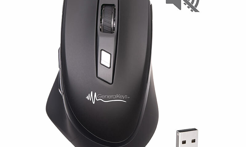 Schluss mit nervigen Klickgeräuschen! Die neue Silent-Maus von GeneralKeys bringt Ruhe in die Büroarbeit mit nahezu geräuschlosen Tasten und überzeugenden Features. Der kabellose Alleskönner punktet durch seine einfache Handhabung: Der mitgelieferte Nano-Empfänger lässt sich problemlos in Laptops und PCs einstecken und macht das Arbeiten zum Kinderspiel.