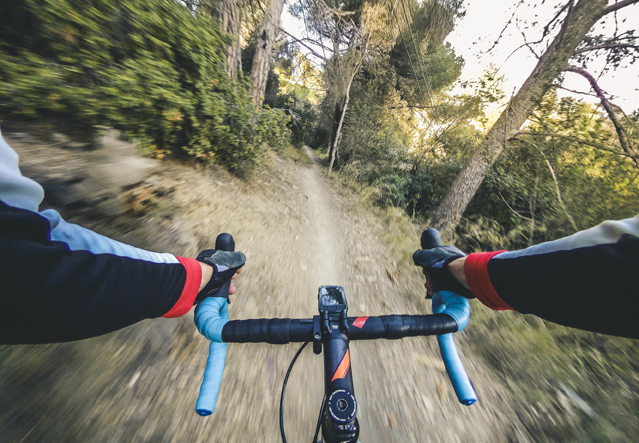 Breite Reifen montiert, Lenker und Sattel in die richtige Position gebracht: Auf geht“s ins Gelände. Doch Vorsicht: „Fahrten auf unebenen Wegen und mit Steigungen erfordern eine besondere Fahrtechnik“, informiert Gouberkov. Ansonsten kann es schnell zu einem Sturz und Verletzungen kommen. Wer beispielsweise eine steile Schotterpiste hinauffahren will, sollte dafür mit geradem Rücken und gebeugten Armen sein Gewicht eher nach vorne verlagern, aber gleichzeitig immer bereit sein, dieses nach hinten zu verschieben, wenn etwa der Hinterreifen auf dem rutschigen Weg durchdreht. Anfängern im Gelände empfiehlt der ERGO Experte, das Fahren am Hang daher erst auf einfachen Strecken zu üben, um ein Gefühl für Rad und Fahrverhalten zu bekommen.
