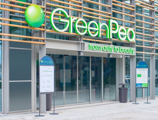 Seit über zwei Jahren kombiniert das Green Pea umweltbewussten Konsum und nachhaltige Architektur als weltweit erstes Fachmarktzentrum und steht damit ganz im Zeichen grüner Nachhaltigkeit. So soll das in allen Details nachhaltig konzipierte Green-Pea-Gebäude wie ein lebender Organismus wirken: Es soll Menschen atmen lassen und durch seine Schönheit die Bedeutung eines nachhaltigeren Lebens veranschaulichen. Die 2.000 Bäume, Pflanzen und Sträucher, die das Gebäude umgeben, schaffen das schon auf den ersten Blick: Sie bieten einen grünen Erholungsraum und kompensieren zudem Treibhausgase. Um natürliche Ressourcen zu schonen und soweit möglich auf fossile Energieträger zu verzichten, setzt das Green Pea außerdem auf regenerative Energiequellen wie geothermische Brunnen, Photovoltaik- und Solarpaneele, Windenergienutzung und die Rückgewinnung kinetischer Energie.