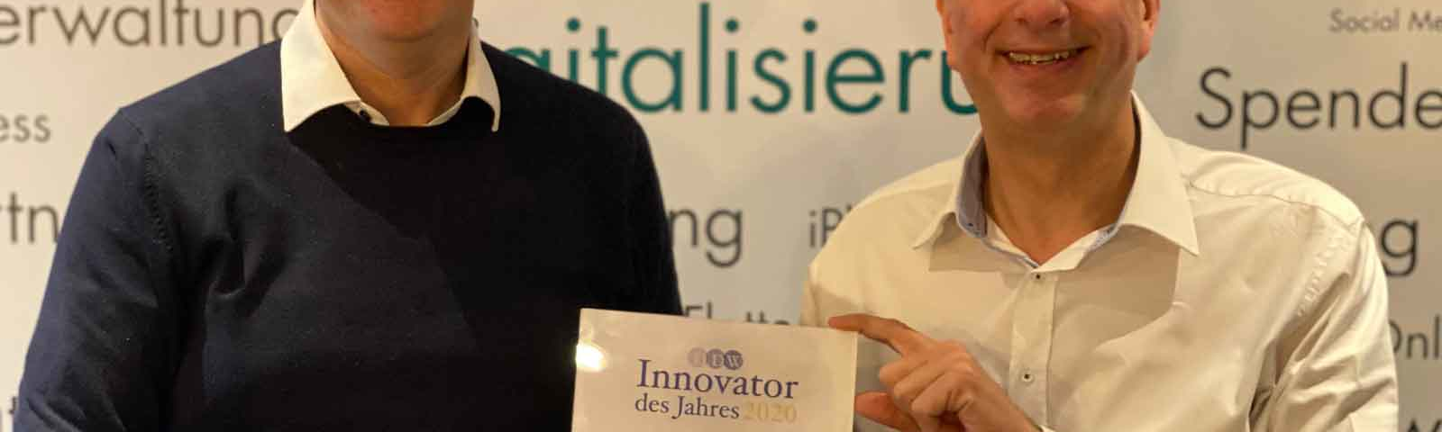 GRÜN Software Group für den Aufbau einer inhabergeführten Buy-and-Build Softwaregruppe als „Innovator des Jahres 2020“ ausgezeichnet. Dr. Oliver Grün freut sich über die Auszeichnung der neuen Geschäftsmodell-Innovation. Festakt der Preisverleihung aufgrund der Corona-Pandemie am 19. Juni 2021.