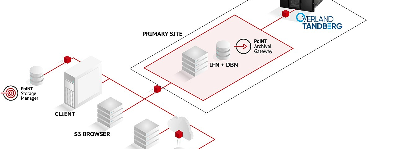 Die Kombination des Tape-basierten Objektspeichers PoINT Archival Gateway mit den NEO Tape Libraries von Overland Tandberg stellt eine performante und hochskalierbare Speicherlösung bereit. PoINT Archival Gateway integriert die Tape Libraries nahtlos als S3 Speicherklasse in eine bestehende Speicherinfrastruktur. Damit können Anwender alle Vorteile der Tape-Technologie auch im Objektspeicherbereich nutzen, und ihre wertvollen Daten zuverlässig und kosteneffizient sichern.