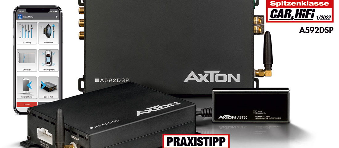 Mit nur einem einzigen Nachrüstgerät der eingebauten Car-HiFi Werksanlage klanglich auf die Sprünge helfen? Und das möglichst einfach und Budget schonend? Kein Problem, meinen die Fachjournalisten der Zeitschrift Car & HiFi (Ausgabe 1/2022), und empfehlen in einem ausführlichen Testbericht dazu die AXTON 4-Kanal DSP-Verstärker A542DSP (VK 239 Euro) und A592DSP (VK 329 Euro): „Die A542DSP und A592DSP von AXTON sind sehr vielseitige Verstärker, die ein einfaches Upgrade von Werksanlagen ermöglichen. Zum günstigen Preis bringen sie DSP-Klangtuning und digitales Streaming in HiRes-Qualität in Auto – das ist aller Ehren wert.“