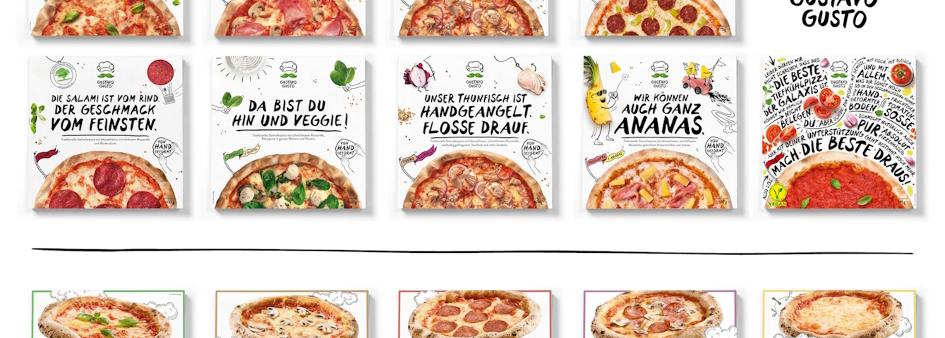 Gustavo Gusto hatte im vergangenen Jahr sein Produktportfolio deutlich ausgeweitet und unter dem Namen „Extra Luftig“ eine neue Sortimentsreihe auf den Markt gebracht. Dabei handelt es sich um fünf Pizzasorten mit einem Durchmesser von rund 24,5 cm. Diese etwas kleineren Varianten ergänzen das bisherige klassische Sortiment mit den 30 cm großen Tiefkühlpizzen. Schon mit den großen Tiefkühlpizzen wurde von Gustavo Gusto ein völlig neues Premium-Segment erschaffen. Dieser Premiumanspruch besteht ebenfalls bei den etwas kleineren Pizzen.