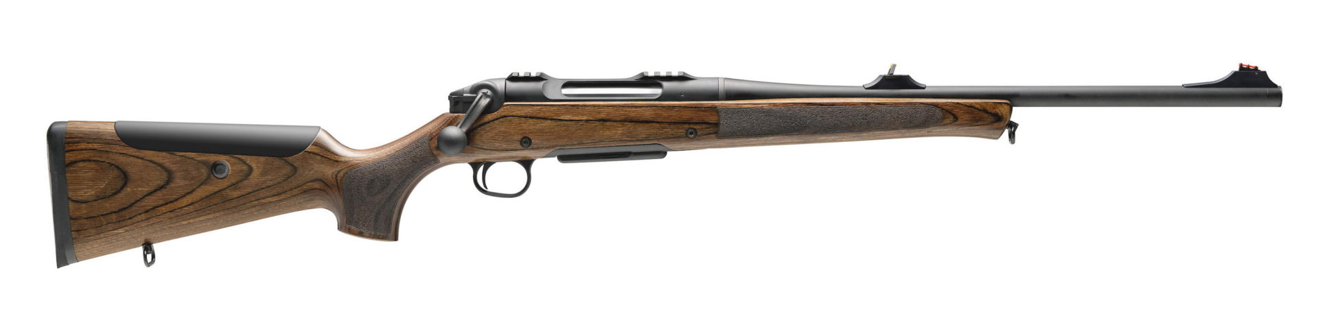 Der Wood-Compound-Schaft bedient sich einer Holztechnologie, die dem Yachtbau entliehen ist. Die charakteristische Holzmaserung dieses Schichtschafts steht einem feinen Holzschaft nicht nach. Das hier verarbeitete schnellwachsende Birken-Schichtholz stammt aus FSC-zertifiziertem Anbau – nicht von einem alten Hochland-Nussbaum.