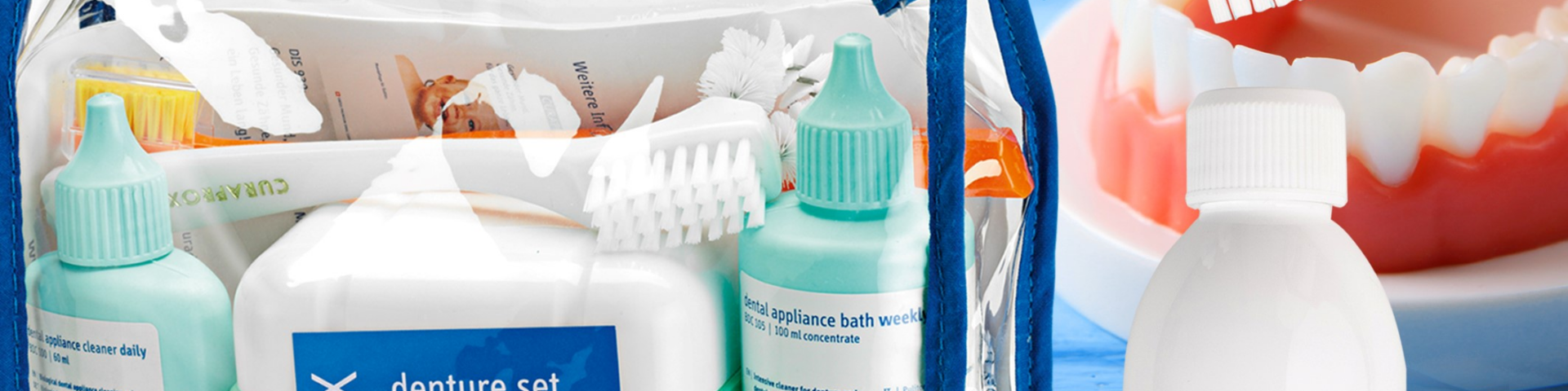 Nie mehr Zahnschmerzen, nie mehr zum Zahnarzt, nie mehr putzen! Das hört sich paradiesisch an. Ist es auch, wenn man einige wichtige Regeln einhält. Wichtigste Regel: Tägliches Putzen der Zahnprothese muss sein und zwar sehr gründlich, wenn man gesund bleiben möchte. Denn Gesundheit fängt im Mund an, auch mit Zahnprothese. Curaprox hilft dabei mit dem Mundpflegesystem als Set oder einzeln.