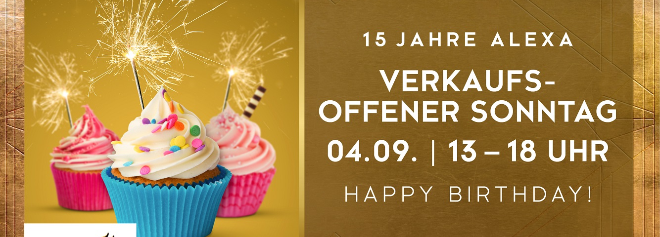 Das Berliner Ladenöffnungsgesetz sieht neben bis zu acht verkaufsoffenen Sonn- oder Feiertagen jährlich bis zu zwei Sonntagsöffnungen vor, die von den Verkaufsstellen zu besonderen Anlässen beantragt werden können. Am 4. September führt das ALEXA zu seinem 15. Geburtstag eine dieser frei wählbaren Sonntagsöffnungen durch.