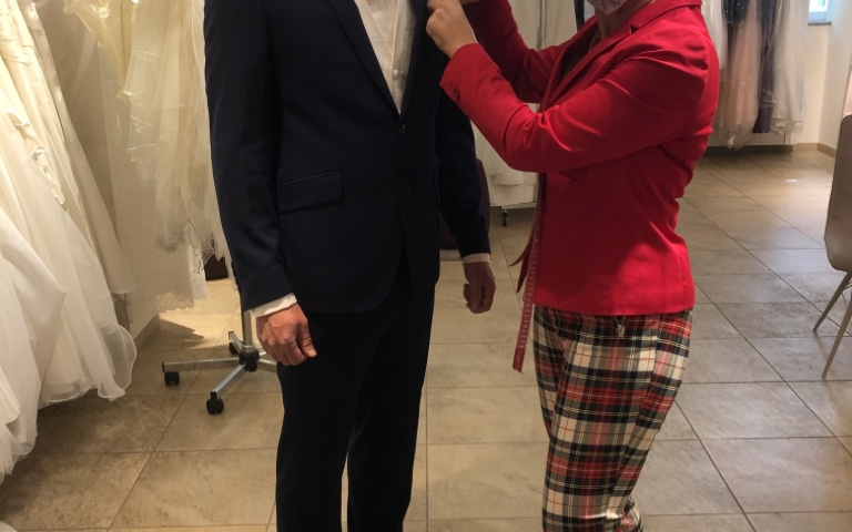 In den ersten Tagen war es noch ein ungewohntes Gefühl, aber jetzt hat sich Sabine Kuch, Inhaberin vom Haus der Braut & Gentleman aus Mönchengladbach, schon an das Tragen einer Maske während der Beratung rund um ihre festliche Mode gewöhnt: „Bei uns im Geschäft herrscht oft eine sehr persönliche Atmosphäre, in einer zweistündigen Beratung baut man eine Beziehung auf, wir sprechen über sehr private Themen, eigentlich verabschiede ich meine Kunden dann gerne per Handschlag, manche umarme ich auch, wenn es besonders emotional war. Das ist im Moment leider nicht möglich, aber wir wollen auch in dieser besonderen Zeit ein besonders positives Erlebnis vermitteln. Zur Begrüßung wird gewunken, in der Beratung wird mehr gestikuliert um Emotionen besser zu zeigen, der Sekt zum „Ja“ wird nicht aus einem Sektglas, sondern mit einem Strohhalm aus einem Fläschchen getrunken. Wenn ein Kleid oder ein Anzug in die Endauswahl kommt, dann gehe ich auf Abstand und unsere Kunden ziehen dann auch die Maske aus, um einen besseren Eindruck zu bekommen, das hat bisher sehr gut geklappt.“