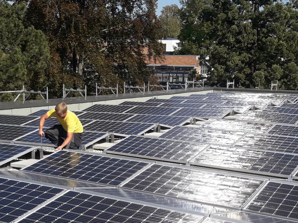 Stefan Schwarz, Geschäftsführer von Berner Elektrotechnik, regte die Besucher der HAUS|HOLZ|ENERGIE an, ihre Hausenergieversorgung zu überdenken: „Sektorenkopplung“ lautete sein Schlagwort. Viele der Gäste hatten das vorher noch nie gehört. „Es geht darum, Photovoltaik-Anlagen mit einem Speicher zu versehen und so zu planen, dass sie nicht nur den Hausstrom produzieren, sondern auch die nötige Energie liefern, um eine Wärmepumpenheizung zu betreiben. Stromüberschüsse lassen sich darüber hinaus zum Laden eines Elektro-Autos nutzen. Das ist lohnender, als sie ins öffentliche Netz einzuspeisen.“ Hausbesitzer könnten auf diese Weise einen Großteil ihres Strombedarfs aus eigener Produktion decken. Lücken gäbe es lediglich während der sonnenarmen Wintermonate. Wer das System mit einem kleinen Blockheizkraftwerk oder einer Brennstoffzelle verbinde, die Strom und Wärme aus Erdgas gewinnen, könne sich von seinem Stromanbieter trotzdem fast gänzlich unabhängig machen.