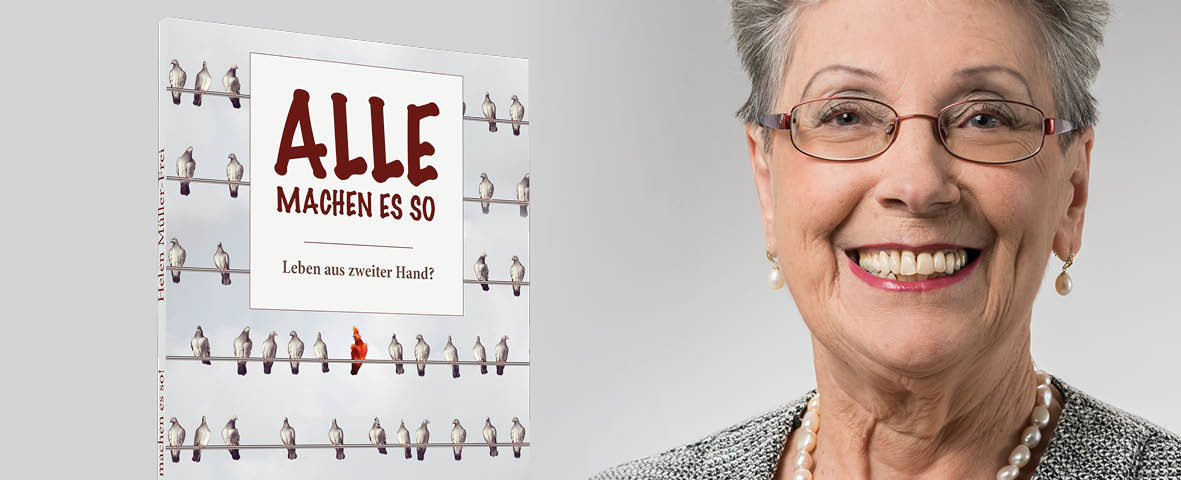 Die Autorin hat eine einzige Leidenschaft: Sie will mit ihren Büchern die Güte Gottes verkünden und seine liebevolle Anteilnahme an unserem Leben in den Fokus stellen. Ihre lebensnahen und scharfsinnigen Inputs, die Jung und Alt begeisterten, hatte sie in ihrem 2016 erschienenen Buch Frei, Freier, am Freisten veröffentlicht. Es geht ihr darin hauptsächlich um die Freiheit, man selbst zu sein! Frei von Manipulation und Knechtschaft der Religiosität. Alle machen es so! ist bereits das vierte Buch, das Helen Müller-Frei in unserem Haus veröffentlicht hat. Die positiven Rückmeldungen ihrer Leser inspirieren sie und so möchte sie gern all das Gute weitergeben, das ihr Leben ausmacht, aber auch mahnen, nicht alles als gegeben hinzunehmen, mit sich selbst im Reinen zu sein und auch mal gegen den Strom zu schwimmen.