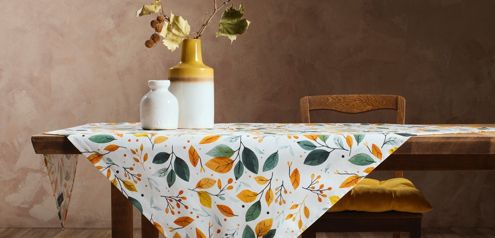 Frisch, luftig und stimmungsvoll wirken die neuen Tischwäsche-Serien im Blätterdesign und mit herbstlichen Motiven. Durch den hochwertigen Digitaldruck bleiben die Farben dauerhaft brillant. Das robuste Canvas-Gewebe ist pflegeleicht und überzeugt mit Langlebigkeit und hoher Strapazierfähigkeit.