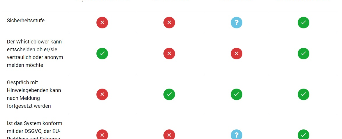 Die Kritik aus der Politik ist nicht gerechtfertigt, denn: Ein digitales Hinweisgebersystem ermöglicht auf einfache Weise und ohne den Einsatz unverhältnismäßig hoher finanzieller, zeitlicher und personeller Ressourcen eine anonyme Kommunikation zwischen Hinweisgeber und Hinweisempfänger. Ein neutraler, externer Meldestellenbeauftragter stellt Unternehmen ein bestehendes, digitales Hinweisgebersystem zur Verfügung, das sich einfach und intuitiv nutzen lässt. Über das IT-gestützte Hinweisgebersystem wickelt der Meldestellenbeauftragte die Bearbeitung von Hinweisen ab. So können Führungskräfte mit geringem Aufwand ihrer gesetzlichen Pflicht nachkommen und sich weiterhin auf ihr Kerngeschäft konzentrieren. Unternehmen sollten jetzt handeln und sich ein digitales Hinweisgebersystem sichern.