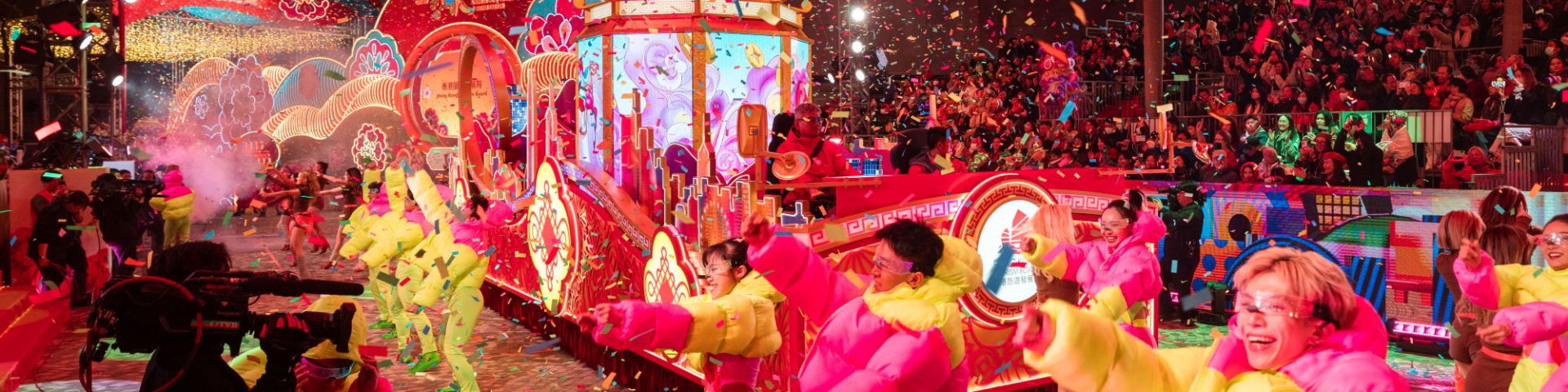 Bereits vor Beginn der Parade stimmt eine Street Party auf das Ereignis ein, bevor sich die aufwendig gestalteten Festwagen und Performances in Bewegung setzen. Die Parade startet am 17. Februar um 20:00 Uhr am Hong Kong Cultural Centre und führt durch zentrale Straßen in Tsim Sha Tsui, darunter Canton Road, Haiphong Road und Nathan Road. Unter dem Motto „BEST FORTUNE. WORLD PARTY.“ feiern die Festlichkeiten den dynamischen Geist des Pferdes – in der chinesischen Kultur ein Symbol für Stärke, Vitalität, Fortschritt und Erfolg.