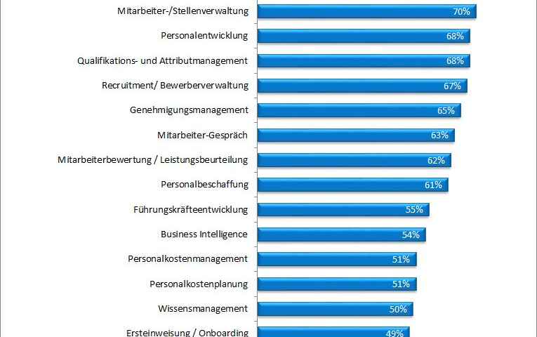 Die Verwaltung des Personalbestands, was u.a. auch die Besetzung von Vakanzen, Leistungsbeurteilungen, Business Intelligence und Analysen, Personalkostenmanagement, digitale Personalakten, Skillmanagement, Mitarbeiterbefragung, Arbeitsschutz, Fortbildung und Personalentwicklung einschließt, ist für den nachhaltigen Unternehmenserfolg nicht nur enorm wichtig, sondern mitunter auch sehr ressourcenintensiv und gerade vor dem Hintergrund der aktuellen Situation in vielen Unternehmen überaus relevant. Immer mehr Personalabteilungen stellen ihre HR-Prozesse und ihren Wertbeitrag für die Organisation auf den Prüfstand, um Kosten in der Verwaltung zu senken und neue Herausforderungen effizient zu lösen. In der konkreten Ausgestaltung der abgebildeten Funktionsumfänge unterscheiden sich die Lösungen jedoch zum Teil erheblich, wie die Übersicht am Beispiel der Personalmanagement-Funktionen zeigt.