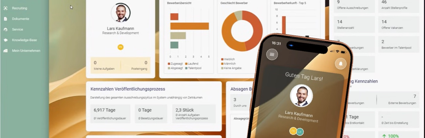 Die humera HR-Suite deckt den gesamten Employee Lifecycle ab – von Recruiting und Personalmanagement über digitale Personalakten und Zeiterfassung bis hin zu KI-gestützten Workflows. Darüber hinaus integriert sie Funktionen, die über klassische HR-Systeme hinausgehen: Mitarbeitende verwalten nicht nur ihre Personaldaten, sondern organisieren auch die Ressourcen rund um ihre Arbeit. Shared Desks buchen, Meetingräume reservieren, Parkplätze sichern – alles aus einer Oberfläche, alles im Self-Service.