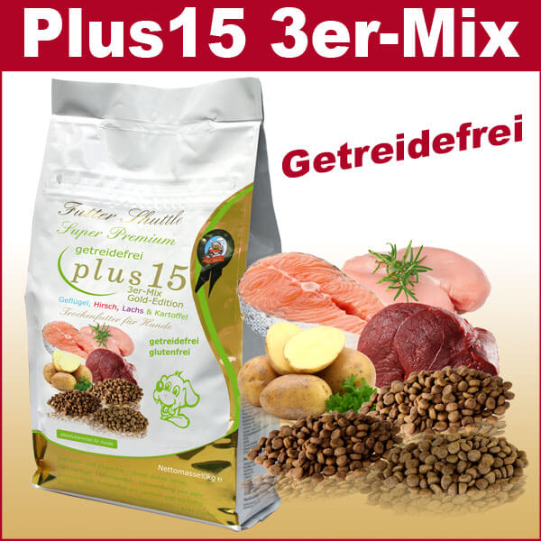 Eines der besten getreidefreien Hundefutter auf dem Markt. Mit der besonderen Formel 3er-Mix Gold-Edition Plus15.