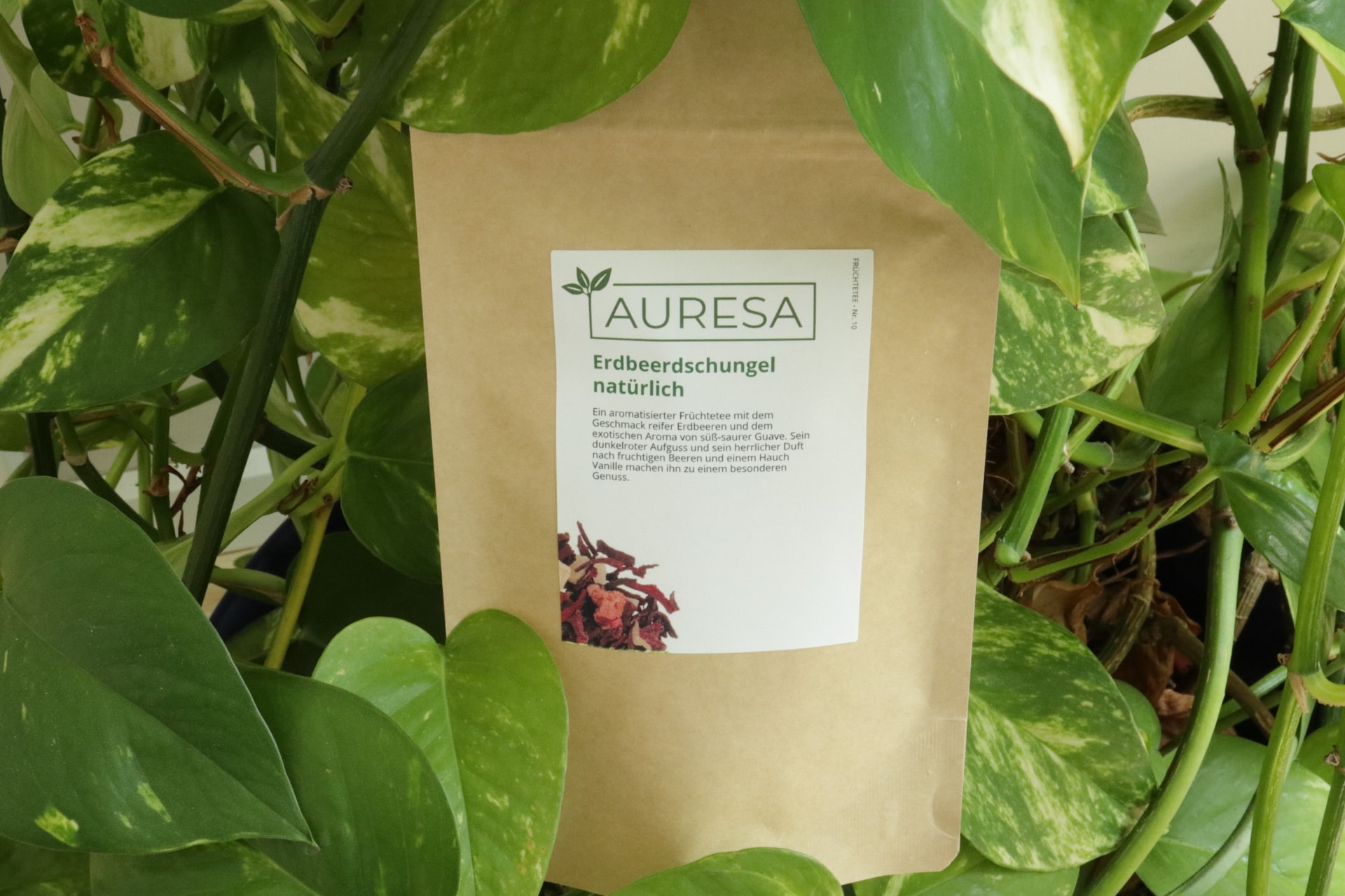 Den Früchtetee Erdbeerdschungel gibt es jetzt im Juli als Tee des Monats: https://www.auresa.de/erdbeerdschungel