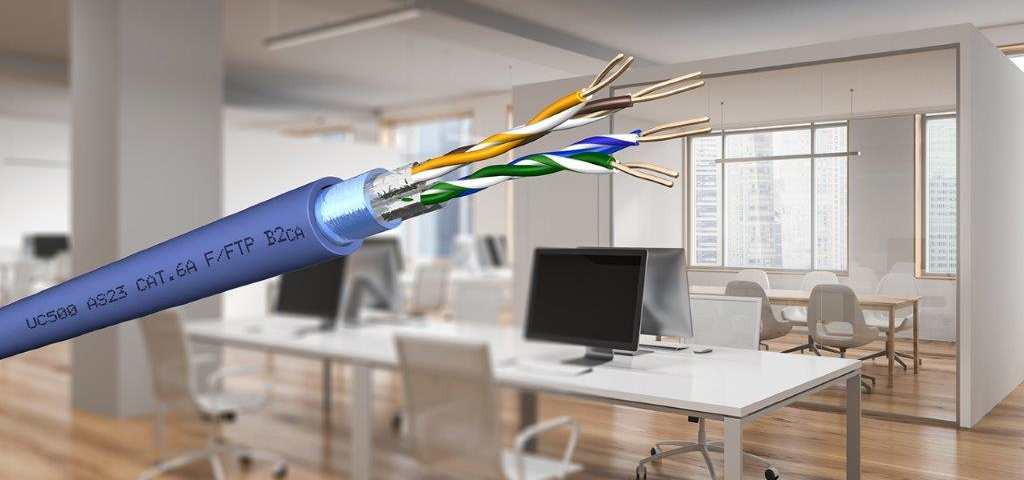 Cologne, Germany, May 21st 2021 – BU Multimedia Solutions (BU MMS) of Prysmian Group has added more fire safety to another copper cable. The Draka UC500 AS23 Cat.6A F/FTP is now available in CPR fire protection class B2ca s1a d1 a1. The upgrade from class Cca to B2ca offers users higher fire safety with the same performance and manageability. The mechanically robust AWG-23 copper cables ensure high resistance due to the LSHF-FR outer jacket. The four wire pairs as well as the entire cable core are sheathed with an aluminum-coated plastic foil. This provides the Draka F/FTP cable with optimum shielding.