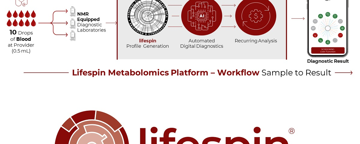 Lifespin ( https://www.lifespin.health ) ist ein Deep-Data-Unternehmen, das die menschliche Gesundheit anhand von Momentaufnahmen des Stoffwechselzustands kartiert. Lifespin hat die Basislinie für die menschliche Gesundheit standardisiert, um deutliche Abweichungen im menschlichen Stoffwechsel zu erkennen, die durch Krankheiten verursacht werden. Studien zeigen, dass sich die Pathogenese auf den Stoffwechsel auswirkt und spezifische Veränderungen im Vorhandensein und in der Menge von Metaboliten verursacht. Lifespin baut eine eigene Biobank auf, die bereits mehr als 200.000 menschliche Blutproben umfasst. Die firmeneigene diagnostische Technologieplattform von Lifespin ist in der Lage, einzelne Stoffwechselvorgänge quantitativ zu erfassen, d. h. bis zu Hunderten von Metabolitkonzentrationen mit einer einzigen Kernspinresonanzmessung (NMR). Mithilfe seiner firmeneigenen Technologie führt Lifespin quantitative Inhouse-Messungen von Metabolomen durch und digitalisiert Stoffwechselprofile, die Milliarden von Stoffwechselbeziehungen umfassen. Diese digitalen Stoffwechselprofile ermöglichen ein systematisches Mapping verschiedener Gesundheitszustände und werden die Differentialdiagnose und Früherkennung von Gesundheitszuständen, die Stadieneinteilung von Krankheiten, die Überwachung des Behandlungserfolgs und die personalisierte Medizin ermöglichen. Tests zur Erkennung von neurologischen, Krebs- und Entzündungskrankheiten befinden sich in der Pipeline, erste regulierte Produkte werden für 2023 erwartet. Das Cloud-basierte Geschäftsmodell von Lifespin basiert auf einer proprietären Software-as-a-Service (SaaS)-Plattform für Diagnostik und Gesundheitsinformationen und ist global skalierbar. Der Beirat von Lifespin besteht aus wichtigen Meinungsführern wie James Rothman (Nobelpreisträger für Physiologie/Medizin, Sterling-Professor für Zellbiologie an der Yale University, New Haven, CT, USA) und anderen prominenten Persönlichkeiten aus den entsprechenden Fachgebieten.