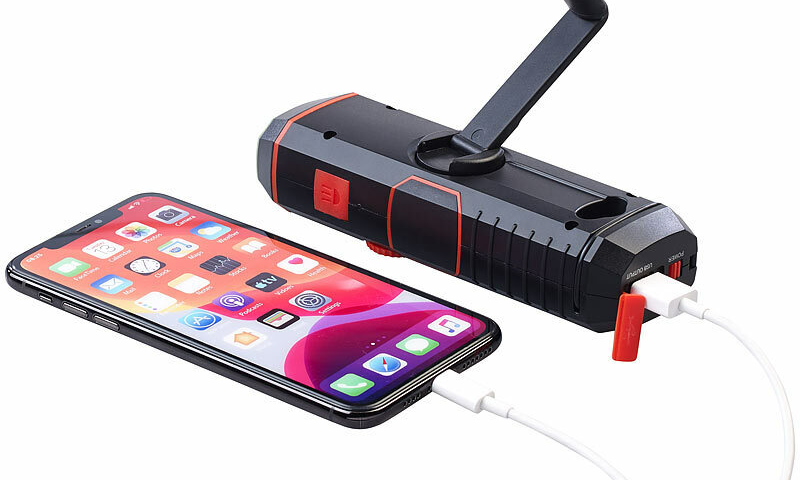 – Mit Handkurbel für Gratis-Strom und USB-Ladefunktion