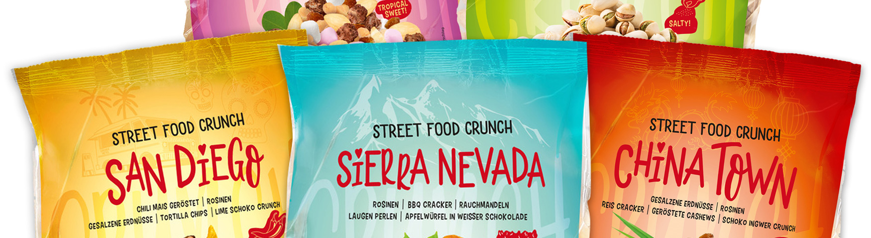 „StreetFoodCrunch“ ist die Antwort auf die steigende Nachfrage nach abwechslungsreichen, hochwertigen Snacks, die sowohl im Einzelhandel als auch im direkten Verkauf an den Verbraucher (D2C) neue Maßstäbe setzen. Die Produktlinie zeichnet sich durch folgende Merkmale aus: