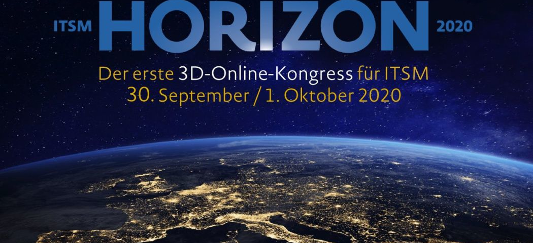 Der 3D-Online-Kongress „ITSM HORIZON 2020“ findet am 30. September und 1. Oktober statt. Teilnehmer können sich von jedem Ort aus einwählen. Eine Anmeldung ist ab sofort unter www.itsm-horizon.com möglich. Die Teilnehmer erhalten eine Anmeldebestätigung und einen Code, mit dem sie sich ab dem 30. September einloggen können.