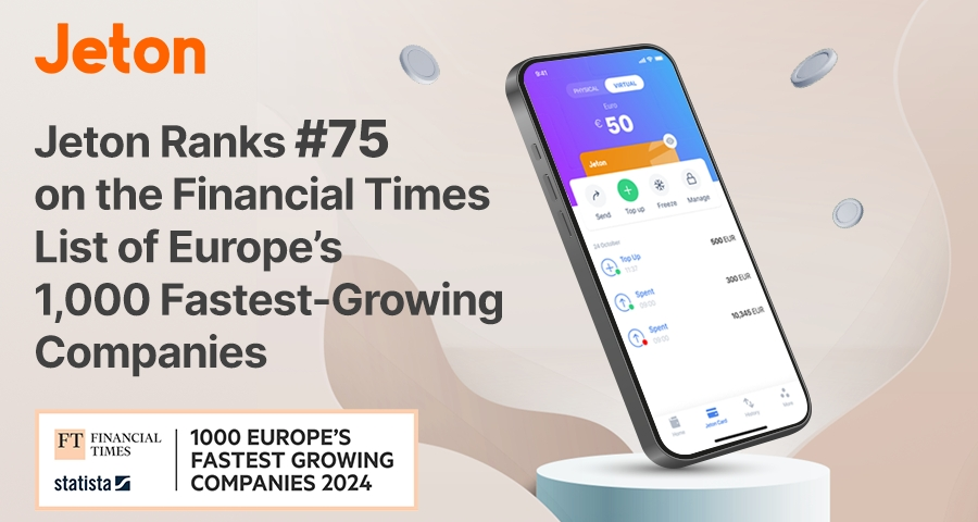 Der globale Zahlungsdienstleister Jeton wurde gemäß dem Ranking der Financial Times (FT), das in Zusammenarbeit mit dem Datenanbieter Statista erstellt wurde, unter den 1000 wachstumsstärksten Unternehmen in Europa geführt. Das Unternehmen nahm Rang 75 auf der FT1000-Liste ein, die einige der am schnellsten expandierenden Unternehmen Europas enthält, von denen viele jetzt globale Branchenführer sind.