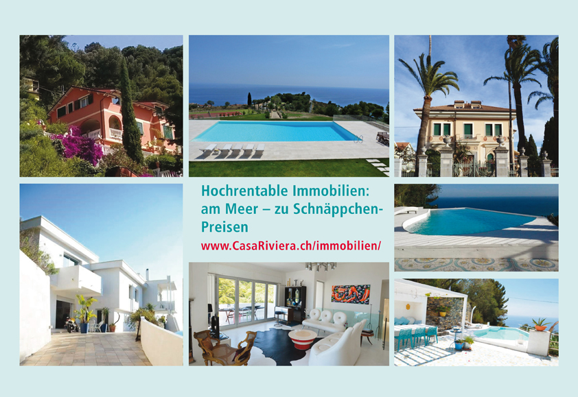 CasaRiviera bietet zur Zeit mehr als 1’000 äusserst preiswerte Immobilien zwischen Genua und Sanremo an. Neu angebotene Immobilien werden laufend publiziert unter: http://www.casariviera.ch/immobilien/ .