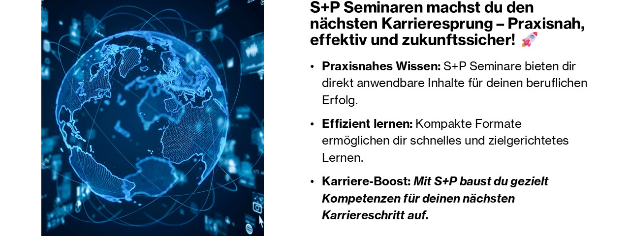 Karriere-Booster im Fokus: Mit den S+P Seminaren machst du den nächsten Karrieresprung – Praxisnah, effektiv und zukunftssicher!
