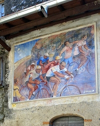 Künstlerisch gestaltete Fassaden sind auch das Markenzeichen von Arcumeggia. „Il paese dipinto“, das gemalte Dorf, wird die kleine Gemeinde auf der zur Lombardei gehörenden Ostseite des Lago Maggiore genannt. Bekannte italienische Künstler haben Arcumeggia im Laufe der Jahre in ein beachtliches Freilichtmuseum verwandelt. Angefangen hat alles Mitte der 1950er Jahre, als der Tourismusverband die geniale Idee hatte, im Sommer Künstler in das von Abwanderung gezeichnete Bergdorf einzuladen. Die Kreativen kamen in großer Zahl und revanchierten sich mit hauswandfüllenden Werken.