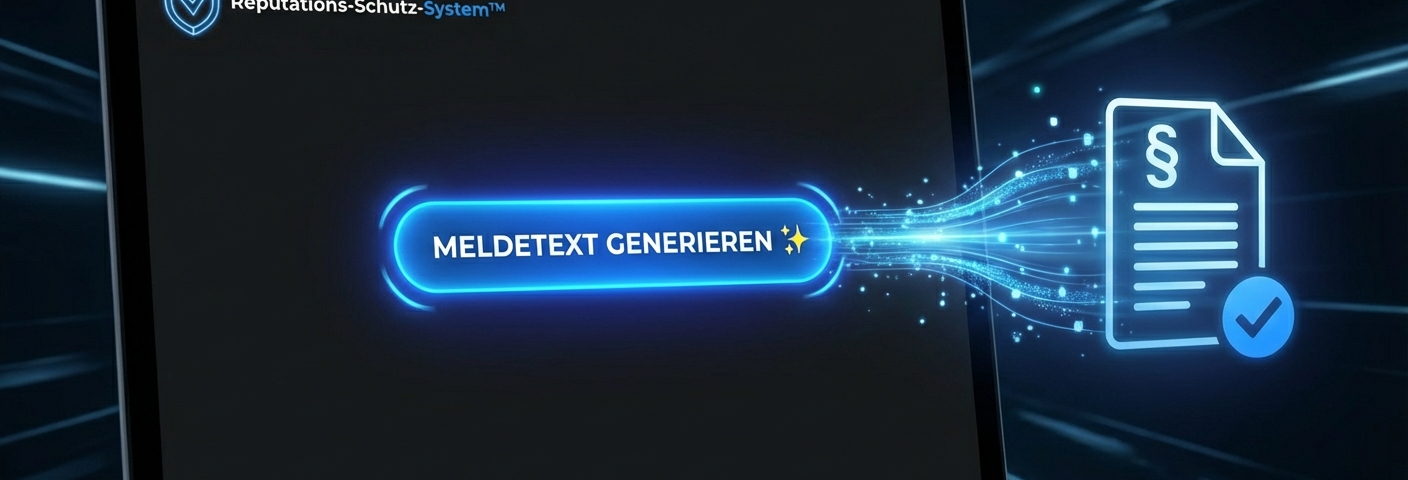 Wichtig: Das Reputations-Schutz-System stellt keine Rechtsberatung im Sinne des Rechtsdienstleistungsgesetzes (RDG) dar. Es ist ein technisches Werkzeug, das Prozesswissen automatisiert.