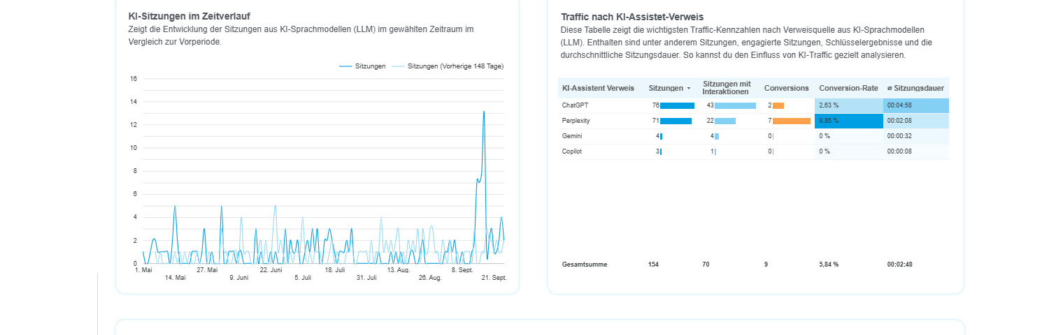 Die Vorteile des Dashboards liegen auf der Hand: Es erspart langwierige GA4-Analysen und liefert täglich aktualisierte Einsichten, die die Optimierung des KI-Traffics erheblich erleichtern. Mit einem Blick erkennt man, welche KI-Assistenten qualitativ hochwertigen Traffic liefern und wie sich dieser in Konversionen niederschlägt.