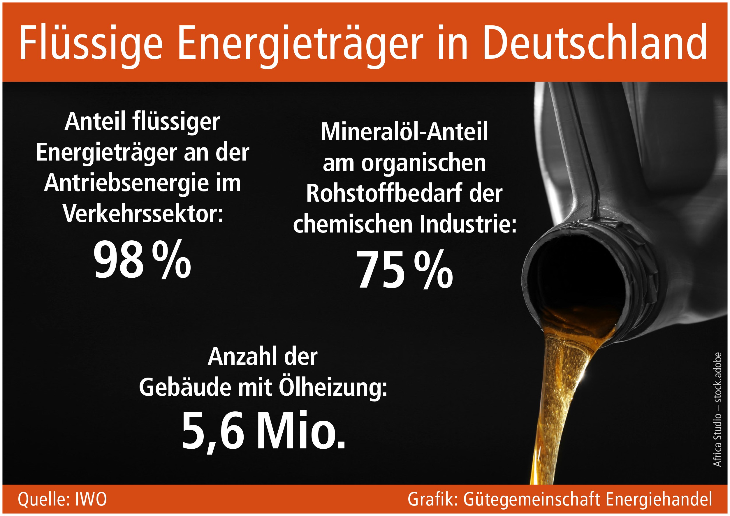 Ein weiterer Vorteil: Die bundesweit bestehenden und bewährten Lager- und Vertriebsstrukturen für eine dezentrale Versorgung mit flüssigen Energieträgern wie Heizöl, Benzin oder Diesel sind problemlos auch für die neuen E-Fuels nutzbar. Weder Großtanklager oder Pipelines noch Schiffe, Lieferfahrzeuge, Tankstellen oder Verbrauchertanks müssen neu errichtet oder aufwändig umgerüstet werden. Auch die Motoren oder Heizungen der Nutzer können bei diesem Energiekonzept in Betrieb bleiben. Die Dimensionen solch einer „Bestandsgarantie“ werden bei einem Blick auf die gegenwärtige Nutzung flüssiger Energieträger in Deutschland deutlich: Im Verkehrssektor stellen sie 98 Prozent der gesamten Antriebsenergie, in rund 5,6 Mio. Gebäuden kommt darüber hinaus Heizöl zum Einsatz. Außerdem deckt die chemische Industrie 75 Prozent ihres organischen Rohstoffbedarfs mit Mineralöl. Es wäre sowohl klimapolitisch als auch volkswirtschaftlich verantwortungslos, die dafür seit Jahrzehnten gewachsenen Infrastrukturen beim angestrebten Umstieg auf eine möglichst treibhausgasneutrale Energieversorgung zu vernachlässigen.