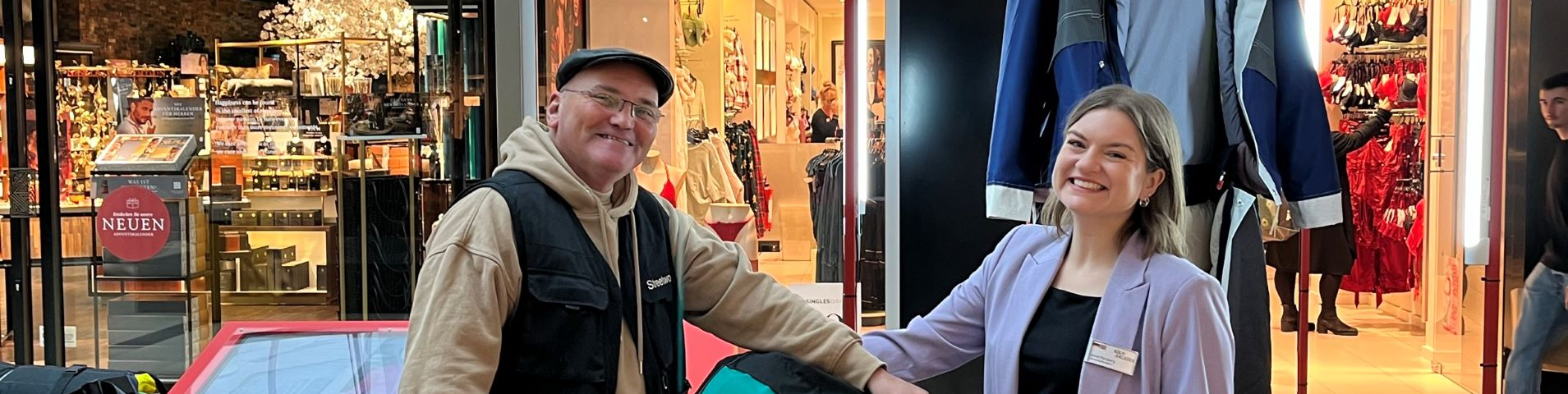 Die Köln Arcaden übergaben jetzt 20 Schutzschlafsäcke (sogenannte Sheltersuits) an die „Arche für Obdachlose“. Weil gerade im Winter viele Menschen in lebensbedrohliche Situationen kommen können, unterstützen die Köln Arcaden seit über drei Jahren die Sheltersuit Foundation. „Wir konnten dank der großzügigen Spenden bereits über 110.000 EUR sammeln und damit mehreren hundert Menschen helfen“, so Marketing Managerin Anne Porzberg.