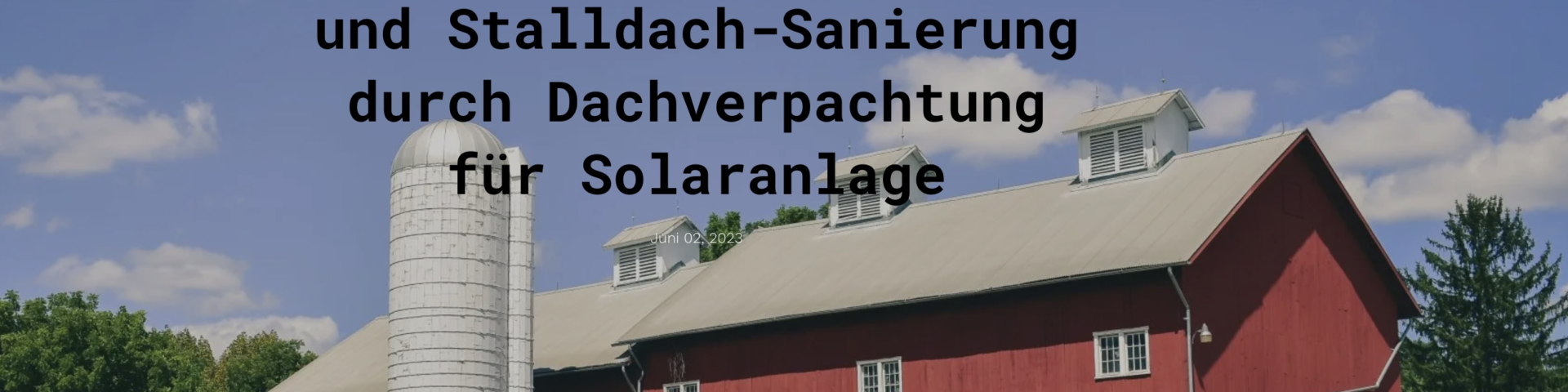 Eine kostenlose Stalldachsanierung durch die eigene Dachverpachtung für eine Solaranlage ist eine Möglichkeit für Landwirte oder andere Gebäudeeigentümer, ihre Dächer zu sanieren und gleichzeitig zusätzliches Einkommen zu generieren, indem sie ihre Dachflächen an ein Unternehmen verpachten, das darauf eine Solaranlage errichtet und betreibt.