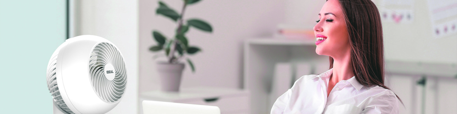 Wenn die Temperaturen draußen steigen, kann die Hitze im Büro oder in Innenräumen häufig unerträglich werden. Dies beeinträchtigt häufig die Konzentration und Leistungsfähigkeit. Der kombinierte Tisch-/Stand-Ventilator IDEAL FAN 1 schafft hier Abhilfe. Er sorgt nämlich nicht nur für eine angenehm kühle Brise, sondern verleiht jedem Raum außerdem eine erfrischende Atmosphäre und steigert dadurch die Arbeitsmotivation.
