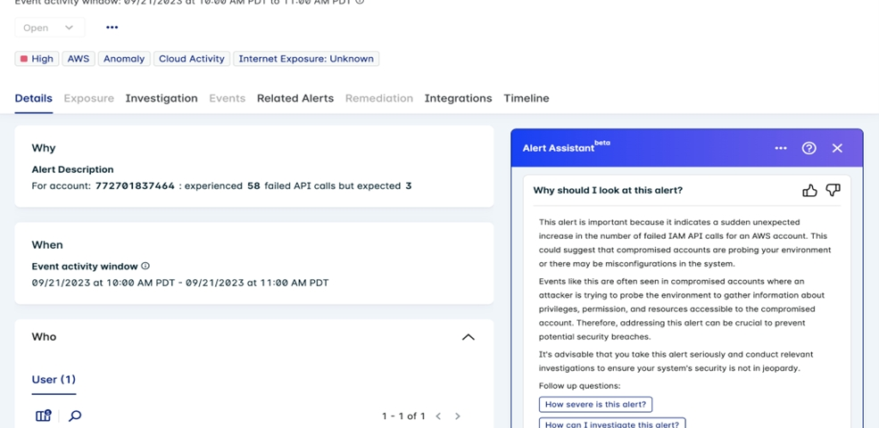 Die Lacework KI-Assistenz bietet Kunden unter anderem Informationen über: