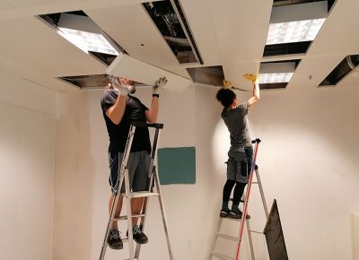a) die Zwischendecke bleibt erhalten (Büroleuchten)