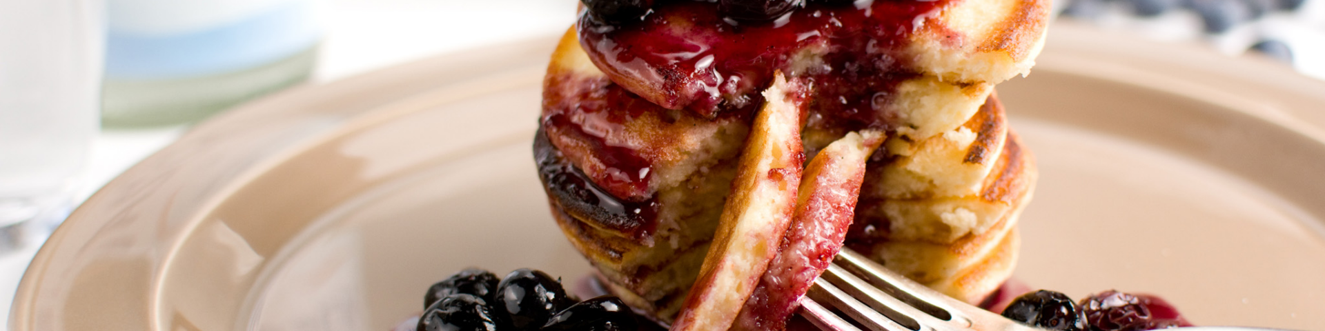 Fluffige Buttermilch-Pancakes mit karamellisierten Blaubeeren