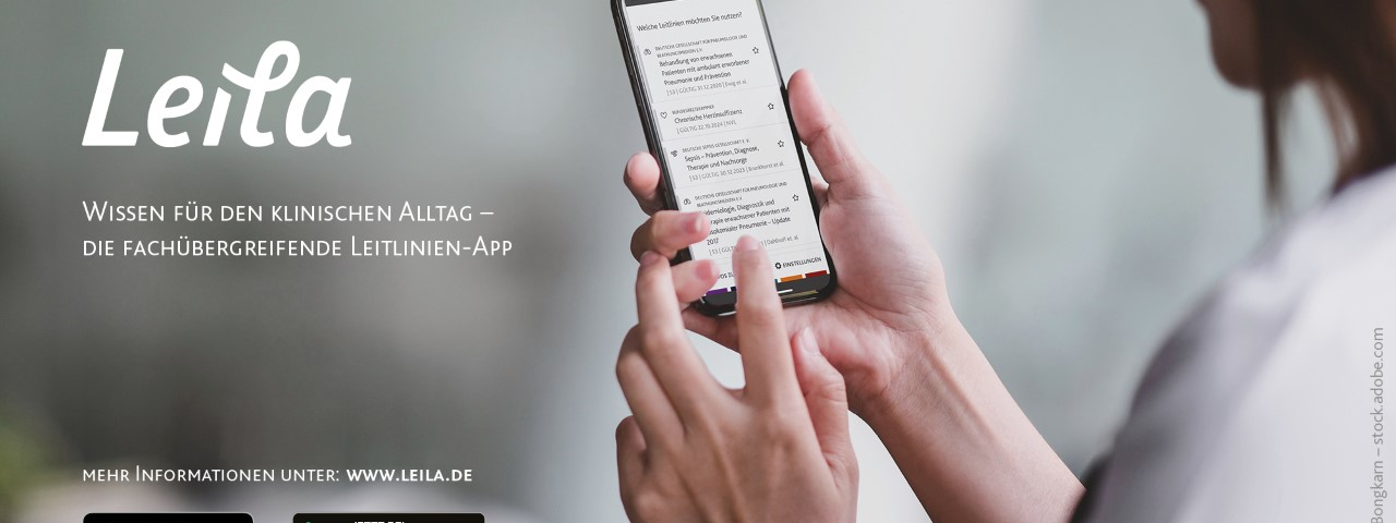 Leila und Leila PRO: Ein Kooperationsprojekt der Lindgrün GmbH und der Deutschen Gesellschaft für Pneumologie und Beatmungsmedizin e.V.. Leila ist die fachübergreifende Leitlinien-App mit Wissen für den klinischen Alltag. Weitere Informationen unter www.leila.de