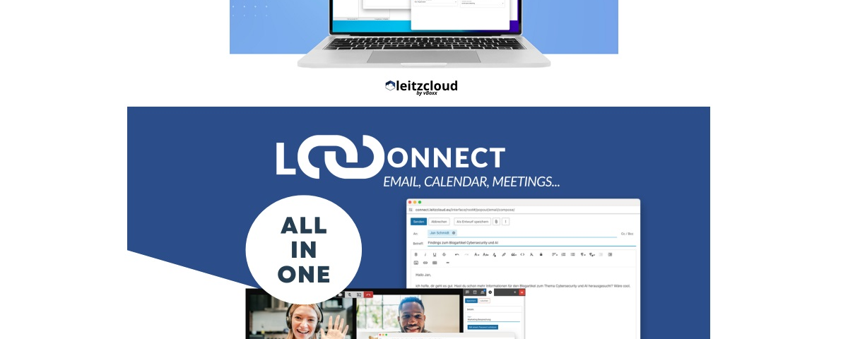 Mit LC-Connect erweitert die DSGVO-konforme Cloud-Lösung leitzcloud by vBoxx ihr Portfolio um eine umfangreiche, datensichere E-Mail Business Suite, komplett gehostet in Deutschland. LC-Connect ermöglicht das sichere Arbeiten ebenso abseits der Cloud-Speicherumgebung – von E-Mail-Kommunikation über Kalender bis hin zu reibungslosen Video-Meetings. Noch vor dem Release von LC-Connect im Mai profitieren Kunden von einem vorteilhaften Einstiegsrabatt.