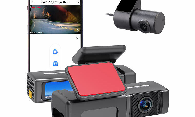 Die 4 K-Dashcam mit Heckkamera von Lescars kombiniert eine 4K-Frontkamera mit einer Full-HD-Rückfahrkamera und verfügt über ein IPS-Display zur Darstellung der Bilder bei Tag und Nacht. Mit einem Sichtfeld von 145 Grad erfasst das System den Verkehrsraum mit Fußgängern, Fahrzeugen und Verkehrszeichen.