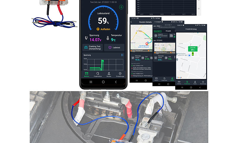 – Kostenlose App für iOS und Android: zeigt aktuelle Spannung, Start- und Ladespannung u.v.m. von bis zu 4 Fahrzeugen gleichzeitig