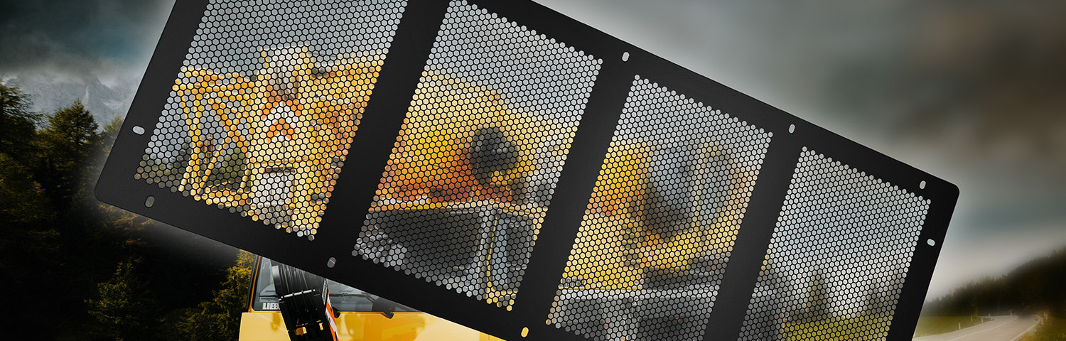 Neunkirchen, 9. Juli 2025. Leistungsfähige Tragkräfte, ein langer Teleskopausleger und weltweite Mobilität – das zeichnet den mobilen Schwerlastkran LTM 1110-5.1 von Liebherr aus. Als Zulieferer der Automobil- und Nutzfahrzeugindustrie hat SCHÄFER Lochbleche in Zusammenarbeit mit dem Kranhersteller ein Schutzblech entwickelt, das die frontseitige Einhausung des Luftfilters am 544-PS-Dieselmotor übernimmt und zugleich als Wartungszugang dient. Die Anforderungen: Das Lüftungsgitter muss den benötigten Luftdurchsatz erfüllen und bei sachgemäßer Handhabung über mindestens 20 Jahre Form sowie Optik bewahren. Zudem spielt das Gewicht auch im Kleinen eine entscheidende Rolle. Mittels Salzsprühnebeltest wurde die Korrosionsbeständigkeit des Bauteils bestätigt. Die Luftfilterschutzbleche werden im nordrhein-westfälischen Neunkirchen gefertigt. Das Liebherr-Werk Ehingen erhält das Bauteil einbaufertig und einsatzbereit just-in-time.