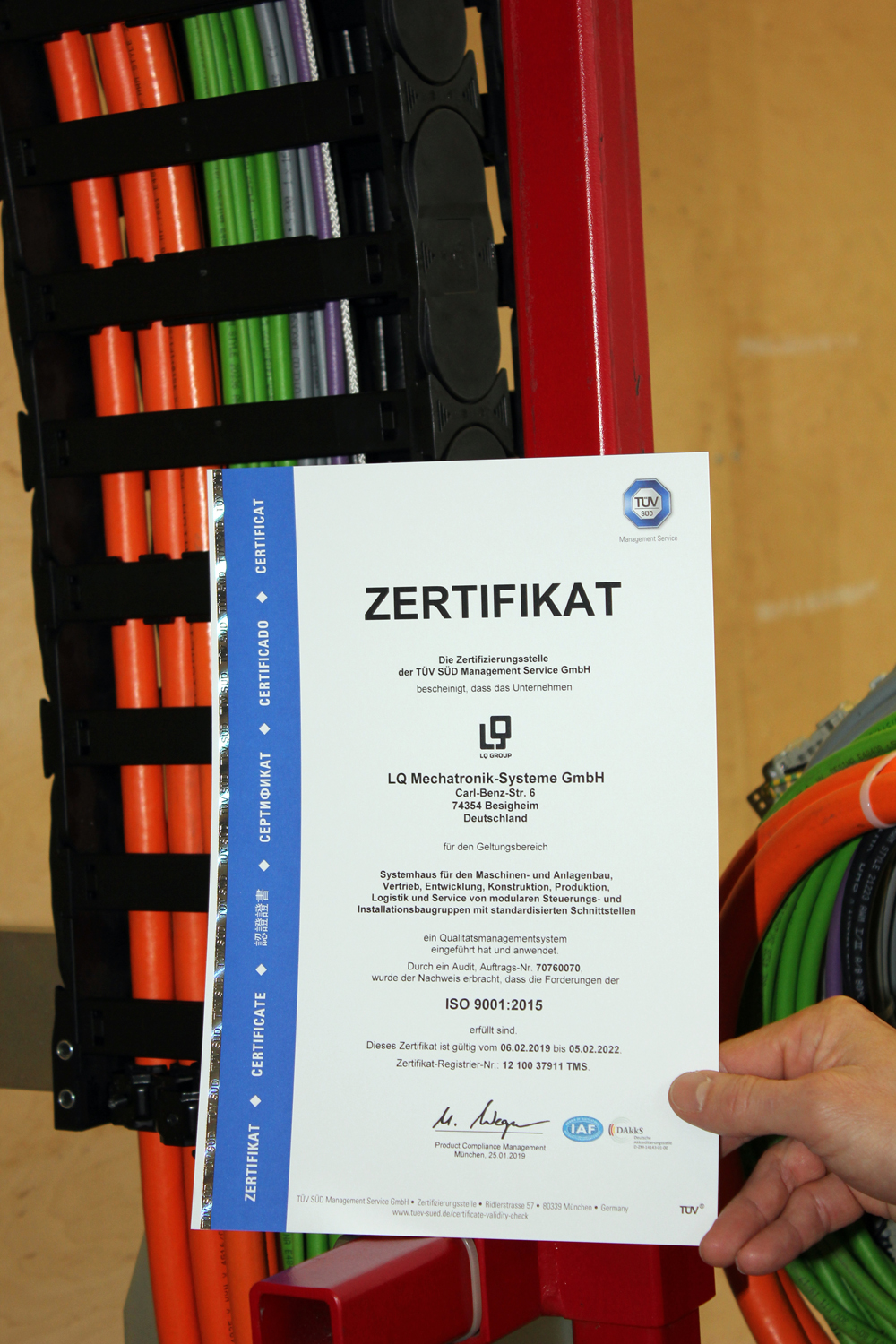 Nachdem LQ Mechatronik-Systeme im Sommer 2018 das Upgrade auf die neue Norm ISO 9001:2015 bestanden hat, folgte nun die Rezertifizierung unter Berücksichtigung des gesamten Unternehmens inklusive aller relevanten Abteilungen.