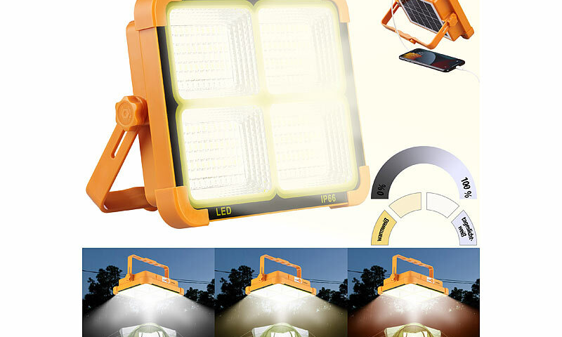 – Hochleistungs-Strahler mit Akku und Solarpanel für mobilen Betrieb