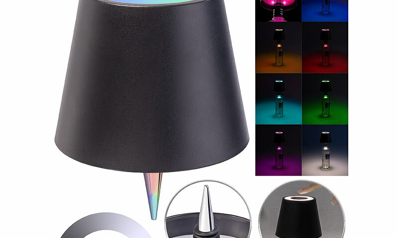 Einstellbare Lichtfarbe: Die Lichtfarbe des Akku-Tischleuten-Aufsatzes für Flaschen von Lunartec kann