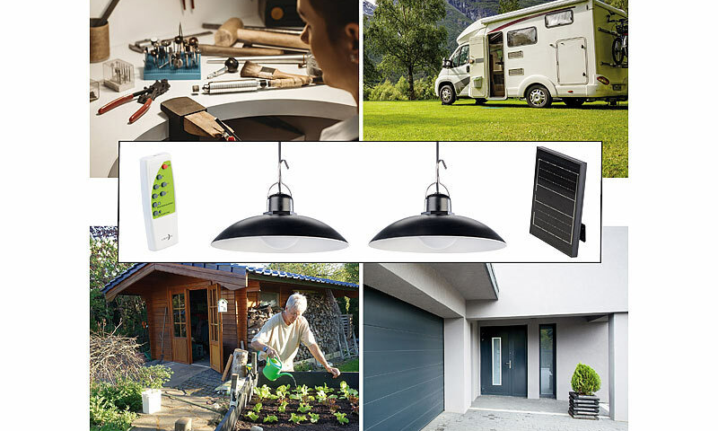 – 2 Hängeleuchten inklusive Solarpanel, Montage-Material, Fernbedienung und deutscher Anleitung